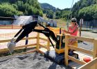 Z Bánské Štiavnice jsme se pak vydali zpátky do kopce na Veterné sedlo a dolů do resortu jsme si jako zpáteční cestu vybrali flowtrail Helligon, který je zároveň (prozatím) jediným trailem v Salamandře. Start trailu se nachází jen pár metrů od výstupu sedačkové lanovky a je značený cedulkou. Na svém začátku sice žádný trail moc nepřipomíná, nenechte se ale zmást vysekaným pruhem ve sjezdovce, protože za pár minutek už stojíte na startu vyhlazeného tobogánu.